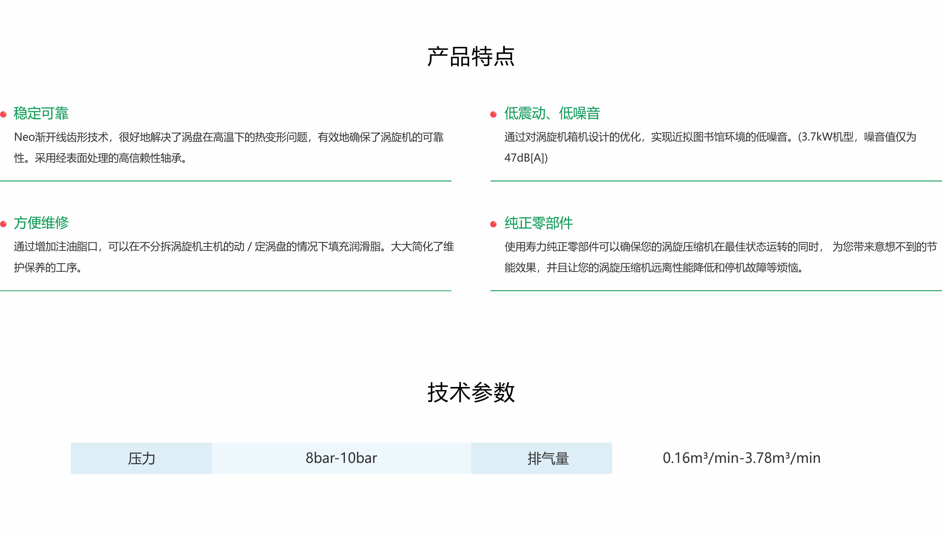VT系列无油涡旋式空气压缩机满足客户严格的无油要求,提供品质好的无油压缩空气。该系列采用性能好、可靠性的压缩主机,具有涡旋式压缩机独有的静音、低振动、体积小和效率好、能耗低等特点,广泛运用于工业、农业、医疗器械、实验室等场合。