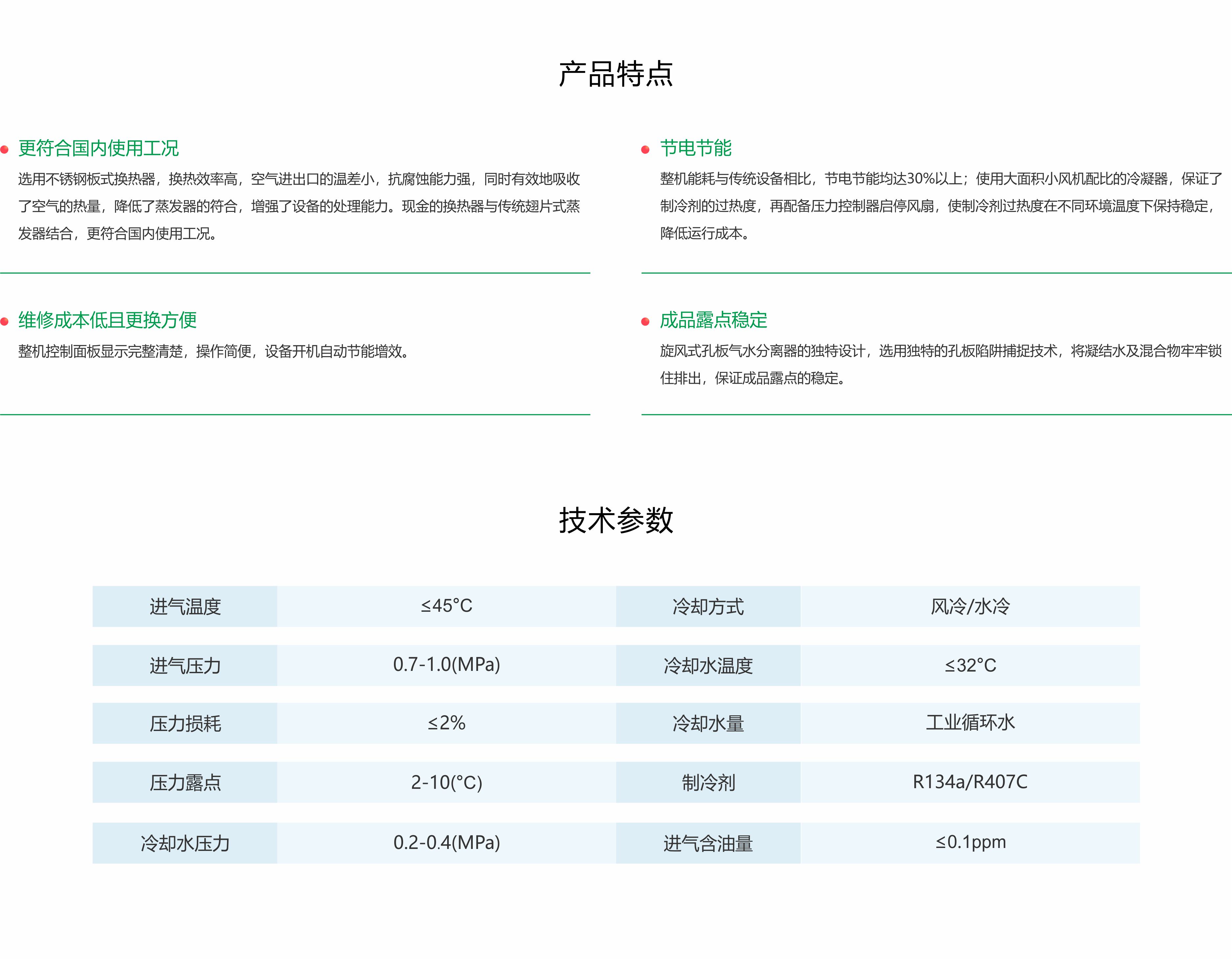 寿力SRD系列环保型冷干机结合以往冷干机的客户现场使用经验,在精心设计的基础上进一步优化了冷干机的性能表现;在保证有效地去除压缩空气在冷却过程中的冷凝水基础上,采用较大热交换器和高效蒸发器的设计,露点稳定,可靠性大幅提高。