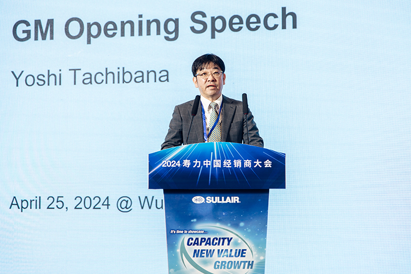 随后日立压缩机(苏州)有限公司新任总经理Yoshihiko Tachibana登台发言,分享其多年来的压缩机相关销售服务的经验,并根据公司及市场情况给予战略指导,鼓励大家在新的财年里继续发扬团结协作的精神,共同迎接市场的挑战。
