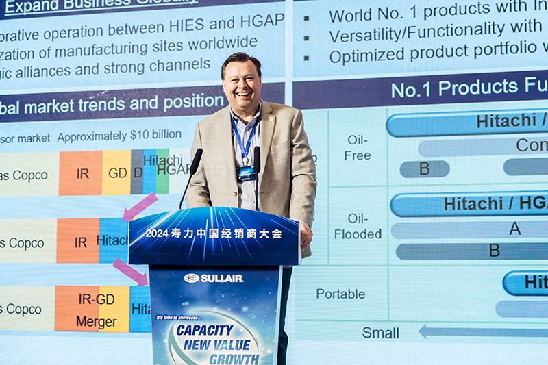 大会伊始,日立产机系统有限公司社长Yasuhiro (Charlie) Takeuchi、常务董事Hideharu (Henry) Tanaka以及HGAP全球总裁John Randall依次上台致辞,分享空压机市场的未来发展趋势,并结合公司战略与愿景作出未来发展规划,与经销商代表建立共同的战略性目标。